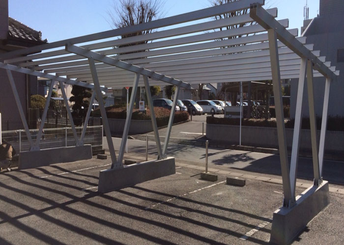 วางเสาคอนกรีตบนหลังคาซีเมนต์นี่เป็นวิธีการติดตั้งทั่วไปที่มีความได้เปรียบที่มั่นคงโดยไม่ทำลายหลังคา กันซึม